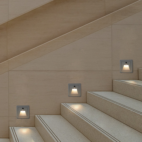 86 lõm cầu thang chiếu sáng LED Đèn tường trong nhà IP44 cảm biến chuyển động thông minh cầu thang ánh sáng kính cường lực đèn hình vuông